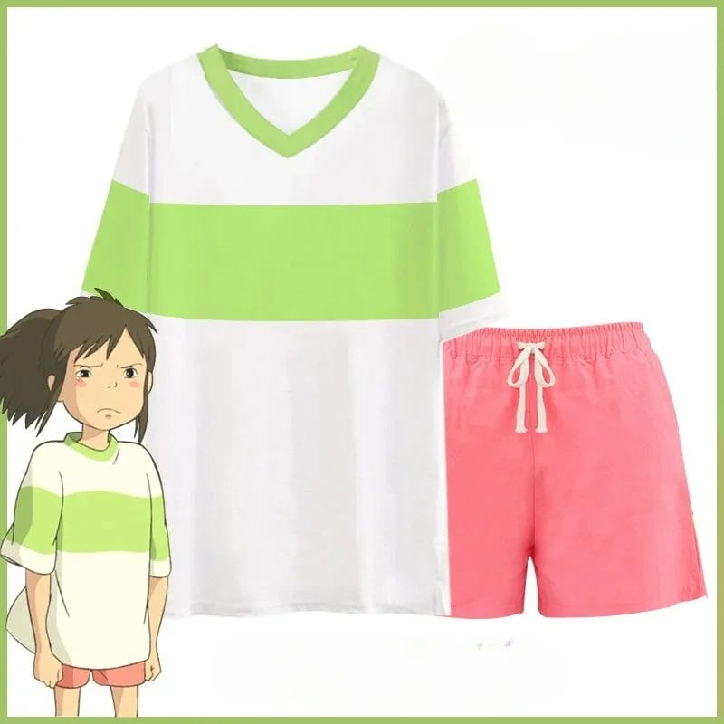 Spirited Away Chihiro Ogino Cosplay Costume Full Set 2PCS